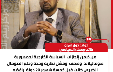 “أصدرت حكومة جمهورية صوماليلاند بياناً رسمياً أعربت فيه عن ترحيبها الكبير بزيارة سعادة الرئيس لاي تشينغتي، بمناسبة زيارته الرسمية المرتقبة إلى مملكة إسواتيني، والمقرر إجراؤها في الفترة من 22 إلى 26 أبريل الجاري.